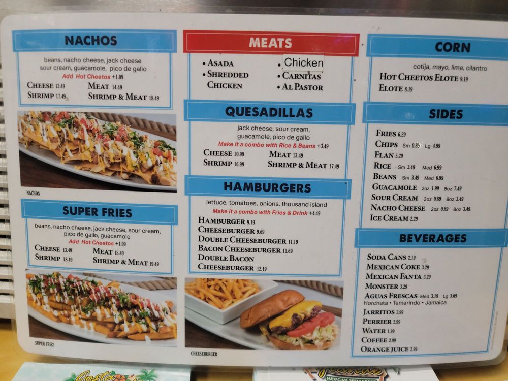 Shrimp, Choice of meat, beans, nacho cheese, pico de gallo, sour cream