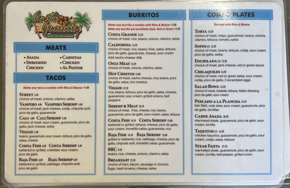 Costa Grande is a Mexican restaurant located in Van Nuys, California. Aside from offering delivery and takeout, it provides vegan options, catering services, and happy hour specials. The menu includes a variety of dishes like the GRANDE wet burrito, Baja fish tacos, carne asada, chicken tinga, and torta de pastor. Customers have praised the generous portions, flavorful food, and friendly staff. The restaurant has a casual atmosphere with TV screens, outdoor seating, and wheelchair accessibility. The unique decor and warm ambiance make dining at Costa Grande a delightful experience. Don't miss out on trying their delicious shrimp tacos or nachos, which have received high praise from satisfied patrons. With its convenient location and diverse menu, Costa Grande is a hidden gem worth visiting.